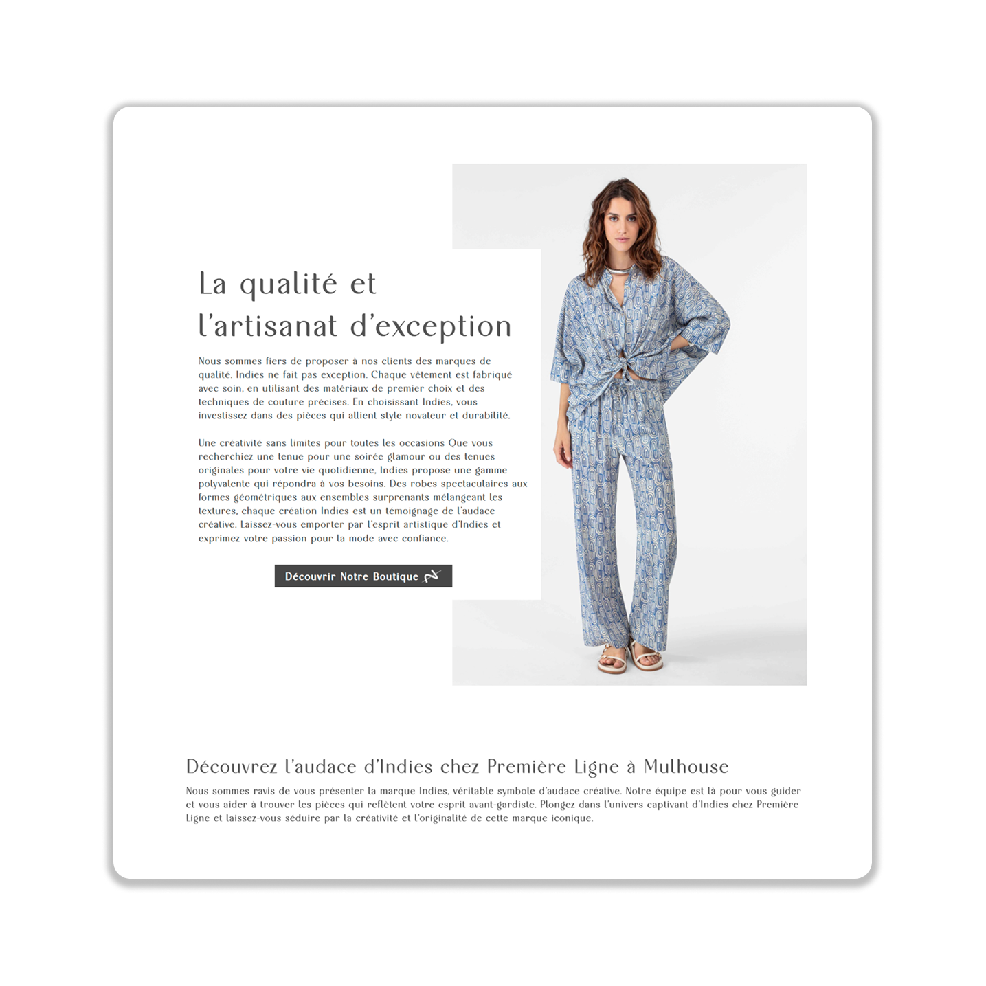 Première Ligne 68, boutique de prêt-à-porter féminin haut de gamme située au cœur historique de Mulhouse depuis 1985, souhaitait moderniser sa présence en ligne.